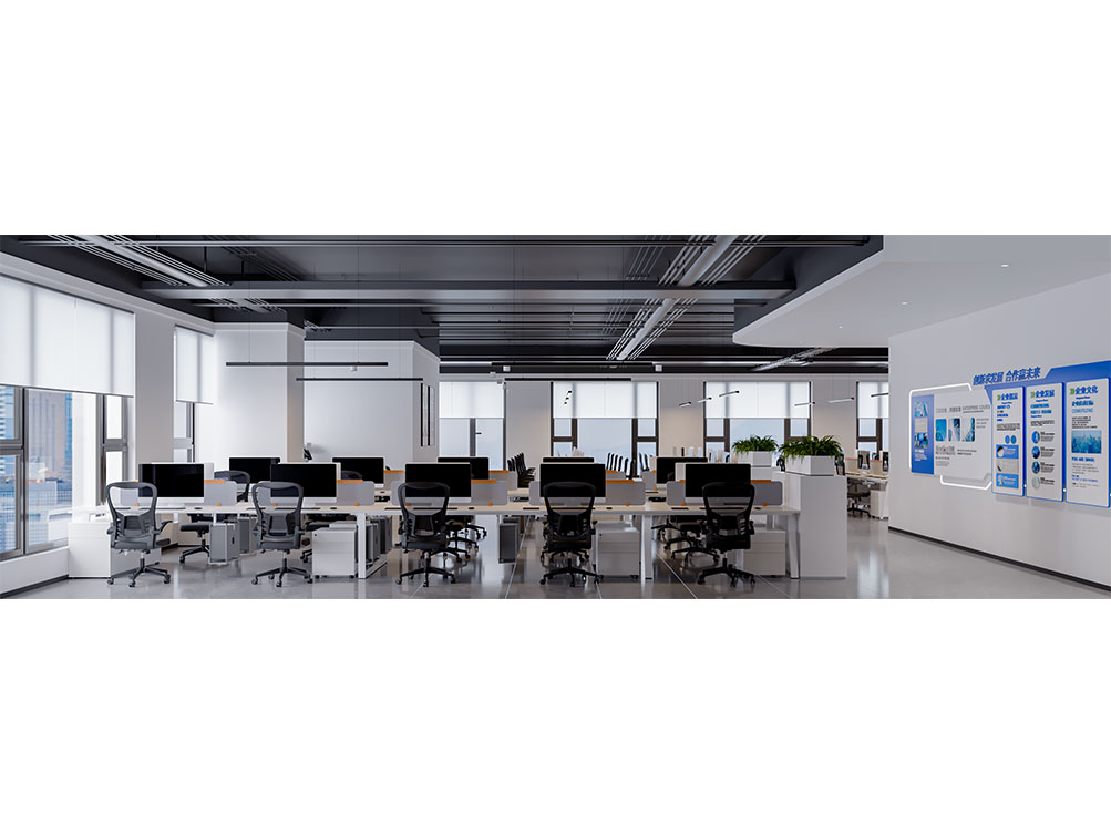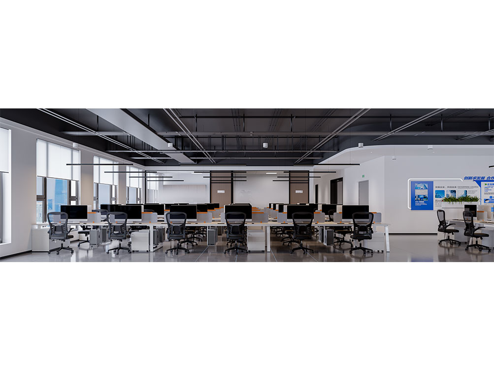 山东邦正机械设备有限公司装修效果以 “工业基因 + 现代办公” 为核心,前台接待区用深灰石材背景墙搭配金属 LOGO 与机械零件摆件,传递专业硬核的品牌形象;该办公室装修是采用模块化工位设计,开放区域以浅色调与机械主题装饰画营造高效氛围,独立办公室则通过木饰面与人体工学家具提升舒适感;展示区设抬高式产品陈列空间与轨道射灯,搭配电子屏及荣誉展示墙,直观呈现企业实力;配套的茶水间与不同规格会议室,兼顾员工休闲与商务需求,整体实现品牌属性、实用功能与舒适体验的统一。
