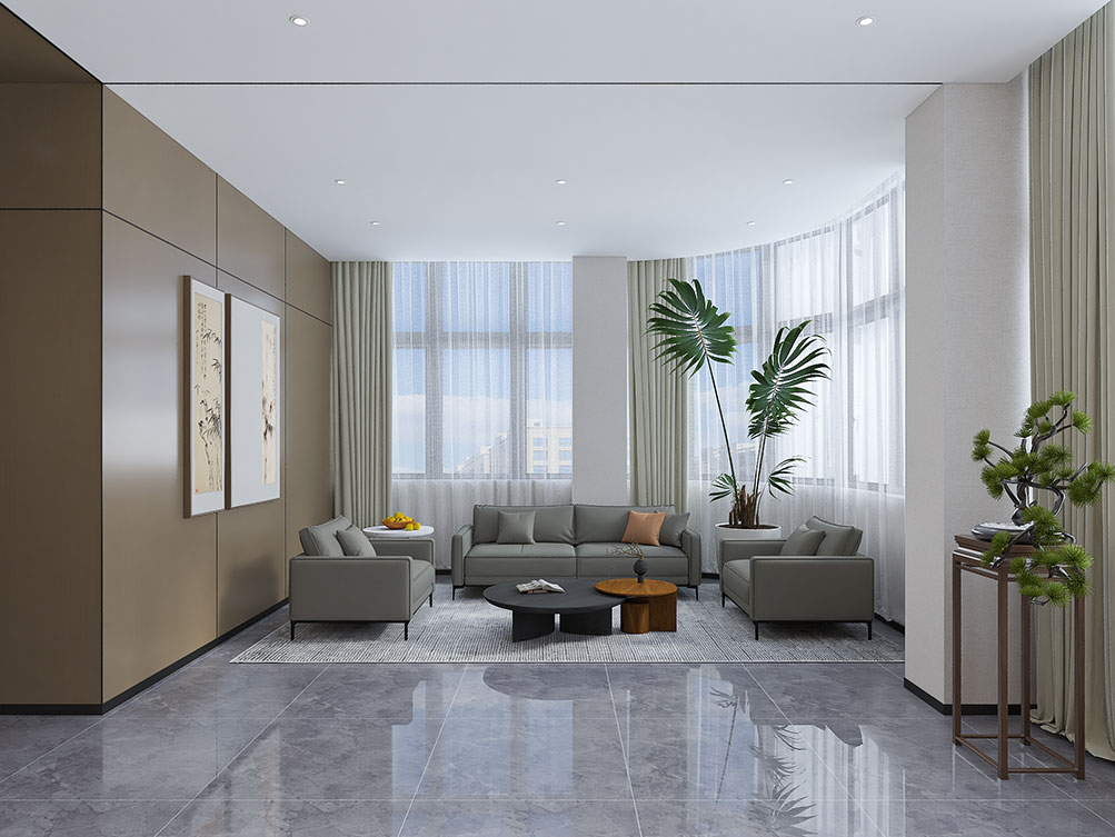 风顺集团装修效果以 “大气沉稳 + 现代高效” 为核心,整体采用深灰、米白为主色调搭配金属线条点缀,凸显企业质感。前台接待区用大理石背景墙嵌入集团 LOGO,搭配简约大气的接待台与艺术摆件,营造专业第一印象;济南办公室装修为开放办公区采用模块化工位设计,配备独立收纳与人体工学座椅,墙面穿插集团发展历程挂画与绿植,兼顾高效与舒适;会议室按规模配置高清会议系统与吸音材质,满足不同商务需求;同时预留休闲茶水区与荣誉展示墙,既方便员工放松,也直观传递企业实力,整体空间兼具品牌形象与实用功能。