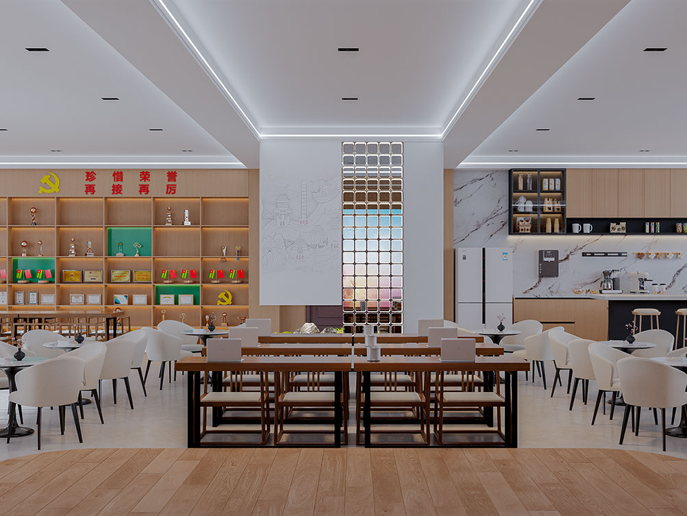 临清国网职工之家装修效果以 “温馨实用 + 电力特色” 为核心,整体采用暖白、浅蓝为主色调,搭配国网标志性的红色元素点缀。空间划分上,既有配备舒适沙发、绿植与书籍的休闲区,方便职工放松休憩;也有设置乒乓球桌、健身器材的运动区,满足日常锻炼需求;同时融入电力主题细节,如墙面挂置电网作业场景装饰画、角落摆放小型电力设备模型,凸显行业属性;功能区还兼顾实用性,茶水间配备齐全厨具,活动区预留灵活桌椅组合,可满足职工聚餐、小型活动等需求,整体营造出兼具归属感与行业辨识度的温馨空间,切实服务职工日常。