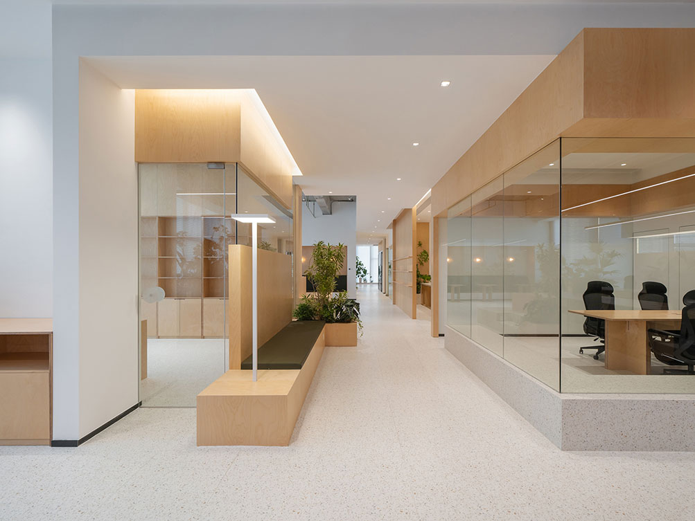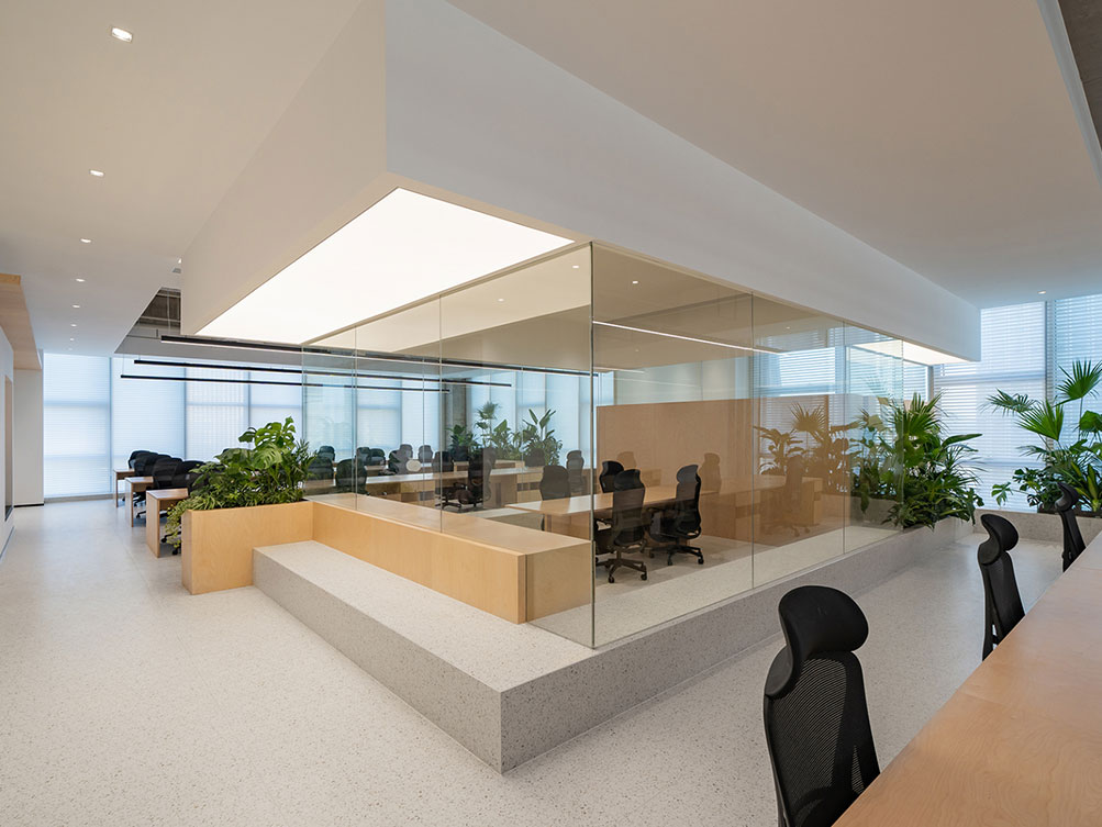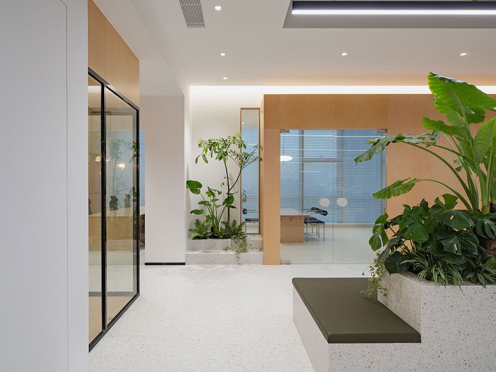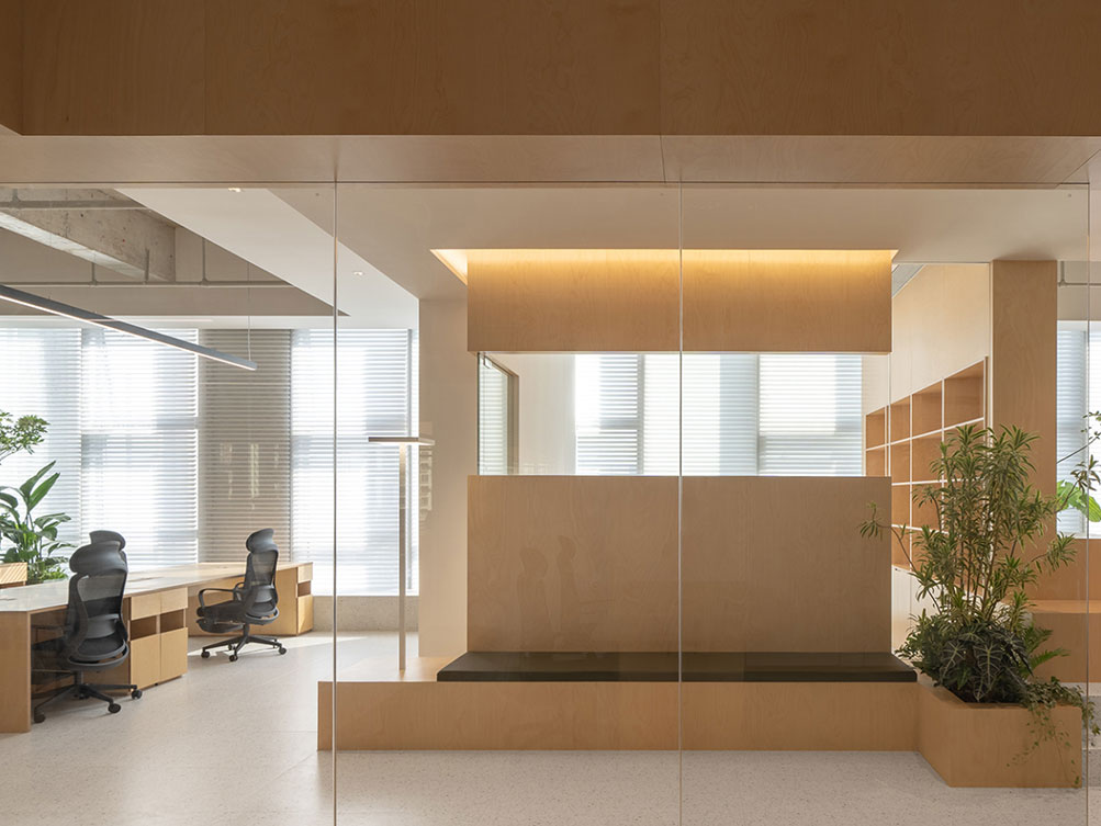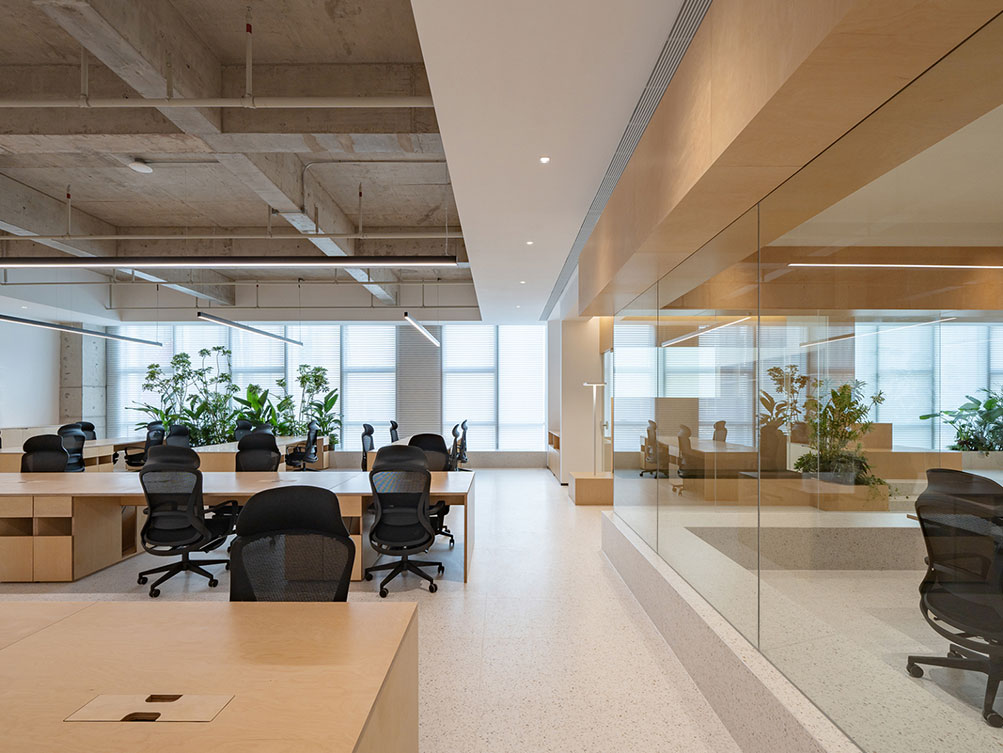 济南办公室装修中傲思拓办公室以自然共生为核,工业风清水混凝土顶搭配温润桦木,玻璃隔断保障通透。开放区原木长桌适配协作,落地窗引自然光,绿植消解冷感,半开放休闲区兼顾多元场景,既保留空间肌理,又以自然元素营造松弛高效的办公场域。