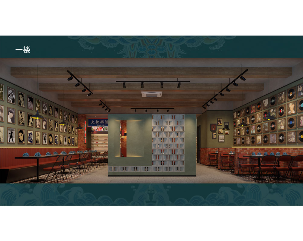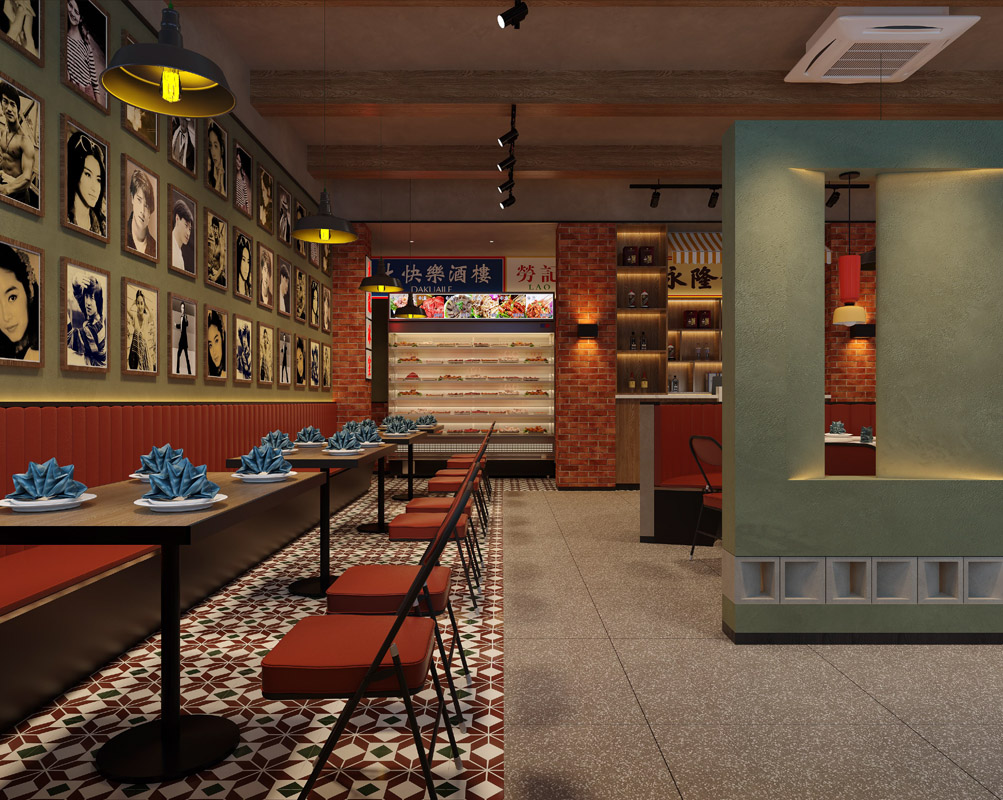 设计核心为“复古烟火,温润藏韵”,我始终认为:老港式绝非破旧杂亂的堆碍,其精髓是岁月沉淀后的温洞质感与肉敛风华一一黑凑的布局里藏着肉敛秩序,市#的烟火中浸調着时光沉淀的雅致与贵气。艺术的表达在于提炼,而非照搬,设计中拒绝刻意做旧与元素堆砌,以简洁利落的线条、经典港式色调,复刻《花样年华》的经典美学,让大排档的随性烟火,与影片传递的温柔雅致相融共生,还原老香港独有的气质