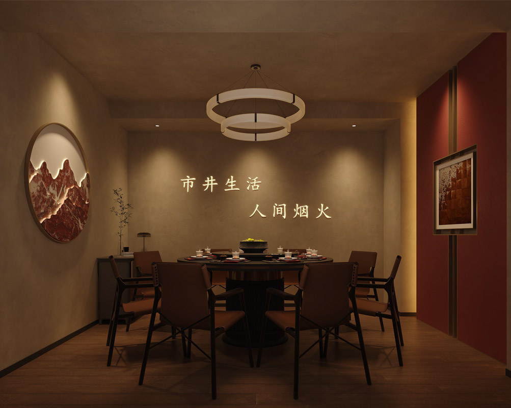 本方案以现代川蜀江湖融合风为核心,将川菜 “麻、辣、鲜、香” 的味觉记忆转化为沉浸式视觉与空间体验,既保留老成都的市井烟火,又融入利落的现代设计语言,打造兼具辨识度与舒适度的主题川菜馆。