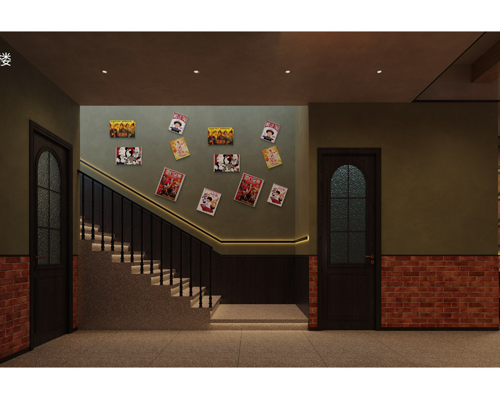 整体设计选用暖黄灯光为基底,搭配深棕木色、复古墨绿与暗纹砖红色,结合暖调射灯与挂式灯泡,营造有故事感的复古氛围,点缀香港电影经典剧照、老香港街头海报、复古霓虹招牌等细节,呼应影片中细腻内敛的复古格调。