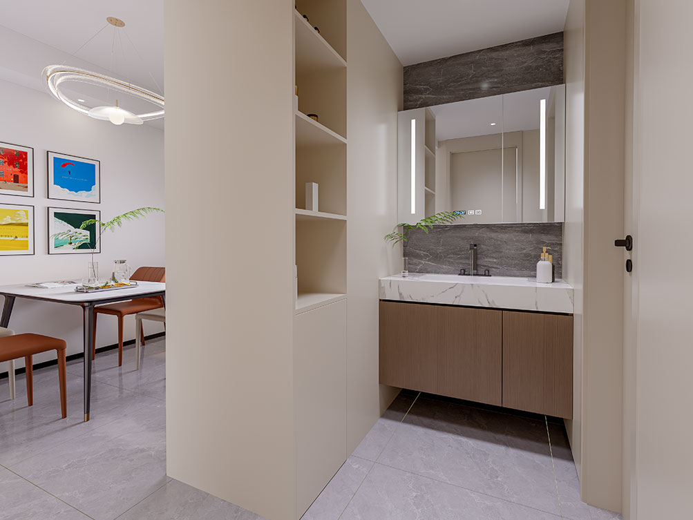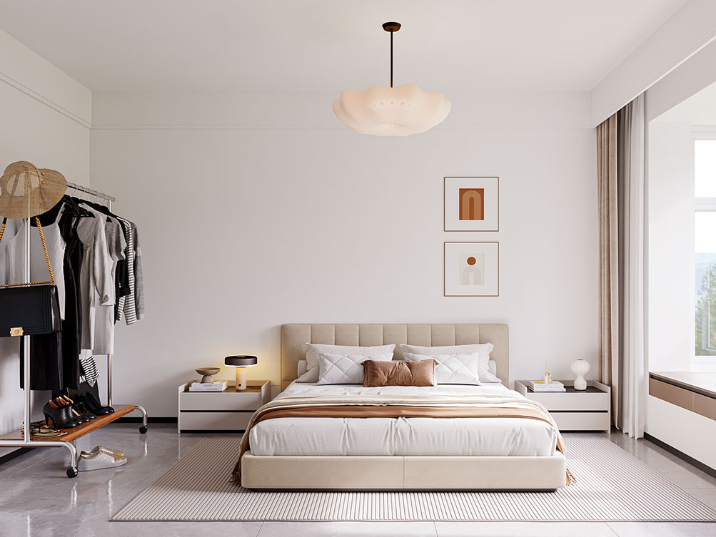 济南阿达森装饰为万象东方设计的现代简约风装修,以浅米色系打底,整面定制柜藏起杂乱的隐形收纳巧思,正契合济南写字楼办公室装修里的高效空间利用逻辑;悬浮式电视柜的轻盈感,弱化了厚重感;环形吊灯勾勒柔和氛围、通透纱帘引自然光漫入的设计,和济南小型办公室装修里借光扩空间的思路异曲同工,整体既适配万象东方的通透户型,又用低饱和色调软萌软装,把都市居所的舒适与松弛精准落地,日常感与精致感刚好平衡。